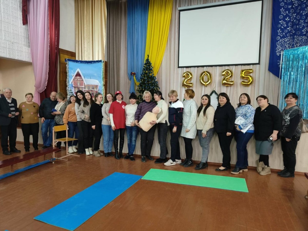Фахівчиня Марія та волонтерка Марія Товариства Червоного Хреста України провели майстер-клас з першої допомоги (відновне положення та серцево-легенева реанімація) для педагогів.