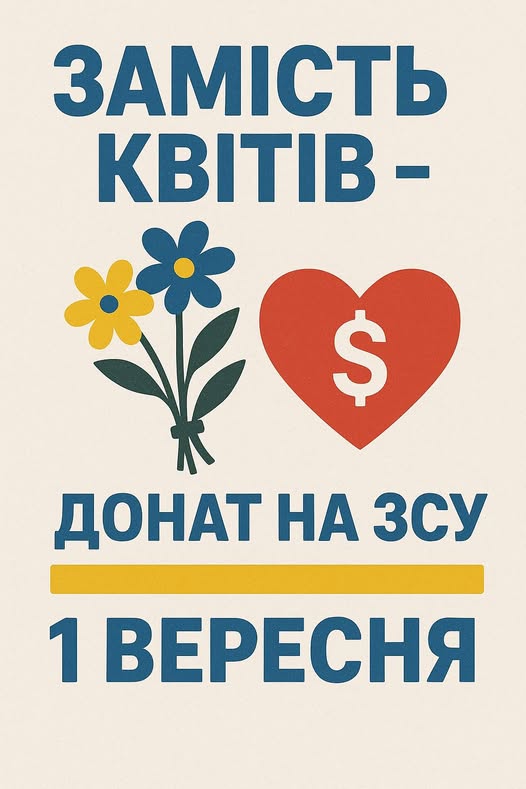 Замість квітів, які зів’януть, пропонуємо зробити добру справу — задонатити на ЗСУ.